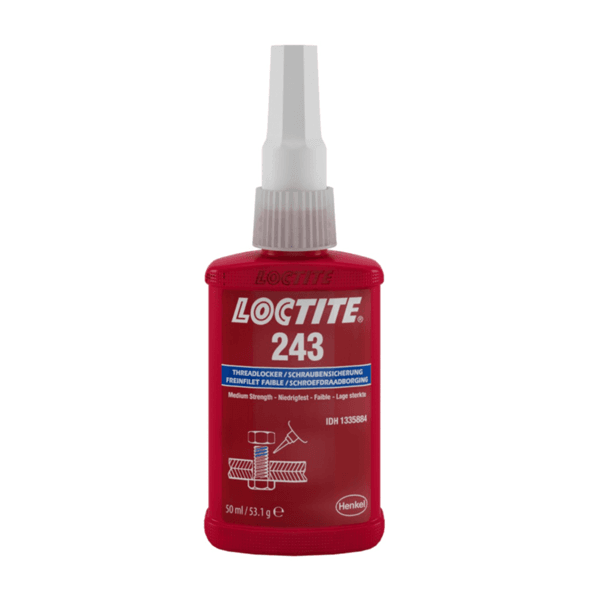 LOCTITE 243 este un adeziv pentru asigurarea asamblărilor filetate cu rezistență medie, care fixează și etanșează piulițe și șuruburi pentru a preveni slăbirea cauzată de șocuri și vibrații.